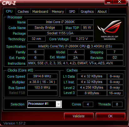 Стоит отметить, что «валидацию» нашего ручного разгона мы произвели при помощи специальной версии CPU-Z, сделанной для материнских плат ASUS серии ROG. По сути, отличие от стандартной версии состоит лишь в цветовой схеме, выполненной в общей стилистике продукции серии Republic of Gamers.