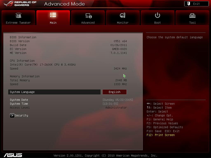 В заключение стоит отметить возможность снять скриншот в BIOS с помощью кнопки F12: файл сохраняется в формате BMP на USB-носитель c автоматически сгенерированным названием. Данная функция пока доступна только обладателям плат серии Republic Of Gamers c EFI Shell BIOS.