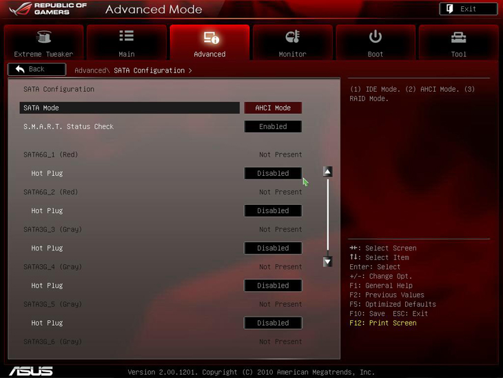 SATA Configuration, помимо задания режима работы SATA-контроллера, позволяет для каждого из подключенных SATA-устройств активировать возможность «горячего» подключения.