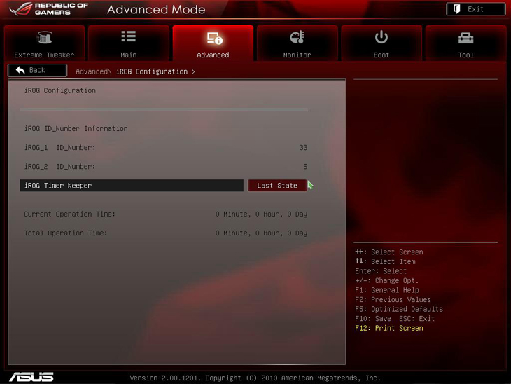 iROG Configuration позволяет отследить время, в течение которого система была во включённом состоянии.