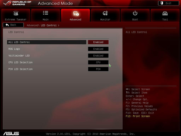 Пункт LED Control служит для управления работой информационных светодиодов, расположенных на материнской плате.