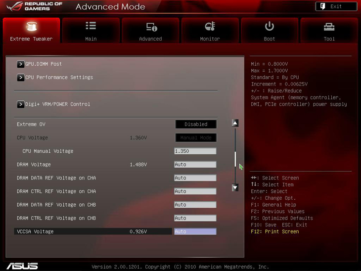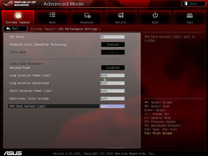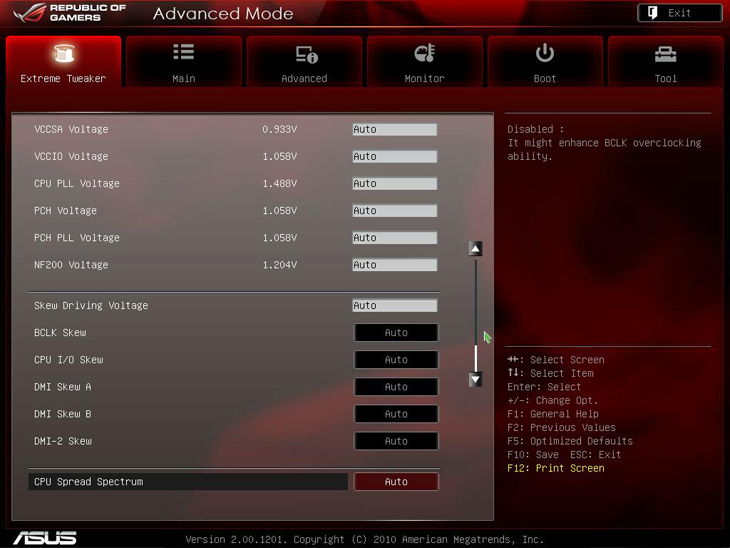 Первый раздел, как и полагается BIOS платы, нацеленной в первую очередь на энтузиастов, предназначен для разгона и настройки системы. Он носит название Extreme Tweaker. Производитель предоставил возможность настраивать напряжение питания всех основных элементов системы, задавать частоту оперативной памяти, активировать технологии, ускоряющие работу системы и уменьшающие энергопотребление. Наличествует опция Internal PLL Overvoltage, которая способна помочь процессорам выйти за частоту 5 ГГц. В BIOS предыдущих плат серии ROG этой опции не было.