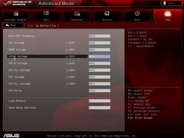 Go Button File позволяет задать параметры системы, которые будут применены при нажатии кнопки Go Button на материнской плате.