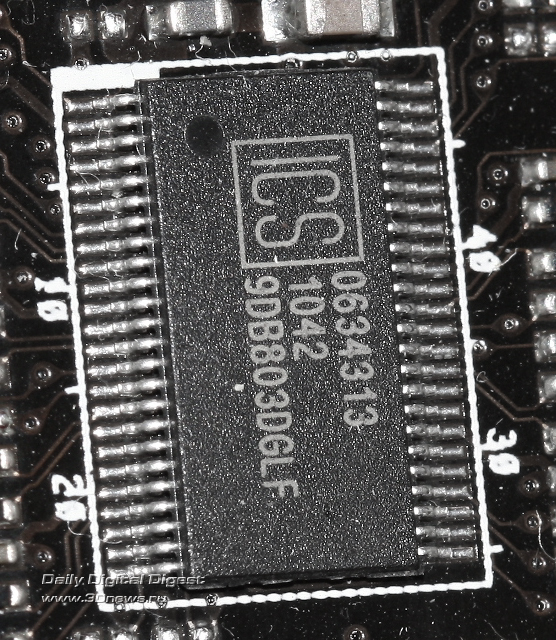 Задание частоты на PCI-e происходит с помощью частотного генератора IDT ICS9DB803DGLF.