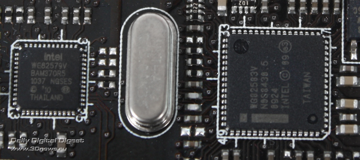 Сетевое оснащение платы состоит из двух контроллеров Intel Gigabit, основанных на чипах Intel WG82579V и Intel WG82583V.