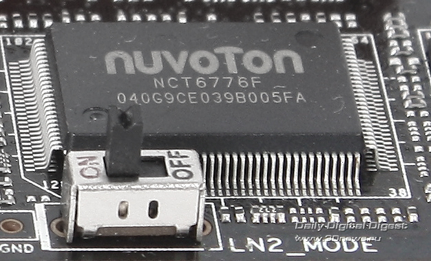 Мультиконтроллер NUVOTON NCT6776F выполняет множество вспомогательных функций, в том числе отвечает за мониторинг системы: снятие температурных показателей, значений напряжений, оборотов вентиляторов.