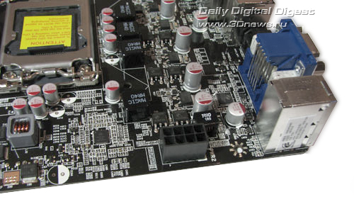 Теперь пара слов о сети: на плате установлен высокоскоростной сетевой контроллер Realtek RTL8111E (Gigabit Ethernet), подключенный к шине PCI Express (x1).