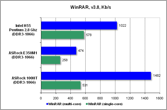 Сжатие данных (WinRAR) измерялось в Кбайт/с, то есть больше — это лучше.