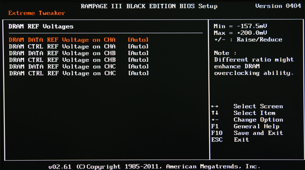 Настройки памяти в BIOS RIII BE, разумеется, присутствуют в изобилии. Можно как изменять основные и второстепенные тайминги, так и раздельно управлять напряжениями на всех трёх каналах памяти.