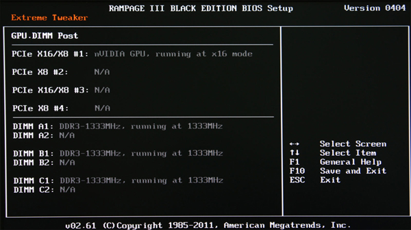 В разделе Extreme Tweaker также есть информационная область, в которой содержатся данные об установленных устройствах PCI-Express и режиме их работы, а также о заполнении каналов памяти и частоте, на которой работают модули.