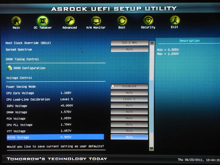 | Изменение Vccsa | от 0,925 В до 1,2 В (~0,1 В) |
