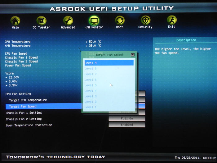 Плата отслеживает текущую температуру процессора и системы, скорости всех четырех вентиляторов, а также уровни напряжений. Пользователь может управлять скоростью трех вентиляторов (процессорного и всех CHA_FAN) с помощью функции Smart Fan: