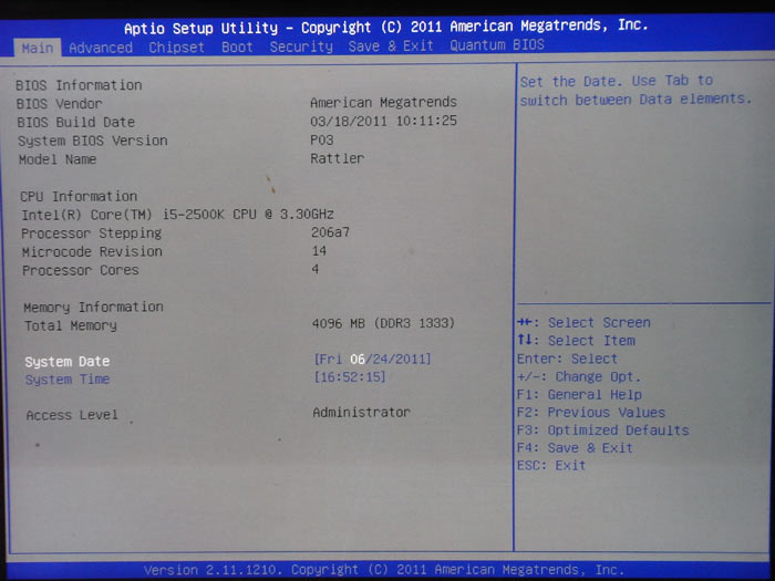 Материнская плата Foxconn Rattler поддерживает технологию UEFI, а интерфейс BIOS основан на коде AMI BIOS и имеет оболочку Aptio. Эта оболочка уже знакома нам по предыдущим обзорам других материнских плат.