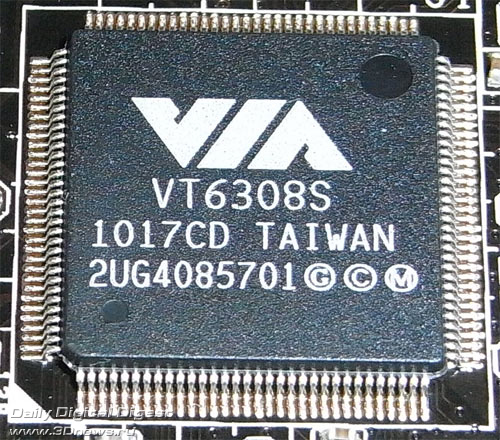 Кроме этого, Rattler поддерживает последовательную шину FireWire, при помощи двухпортового контроллера VT6308S, производства компании VIA. Один порт IEEE1394 расположен на задней панели, а другой подключается при помощи планки (есть в комплекте).