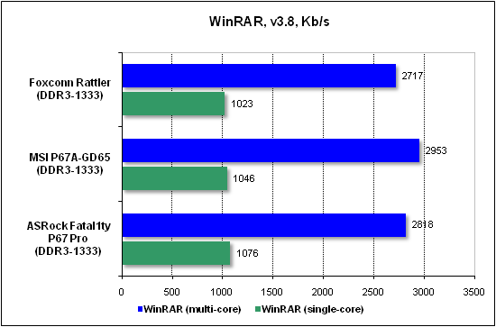 Сжатие данных (WinRAR) измерялось в Кбайт/с, то есть больше — это лучше.