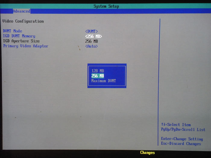а также функцию регулировки объема памяти, выделяемой на нужды встроенной графики: