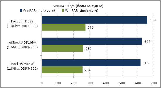 Еще один тест — WinRar (Кбайт/с; больше — лучше).
