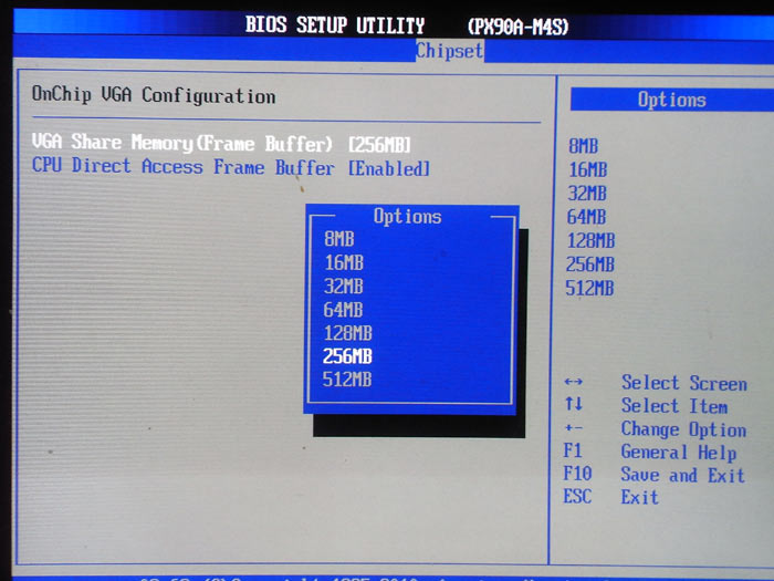 И наконец, отметим возможность регулировать объем памяти, выделяемый на нужды встроенной графики: