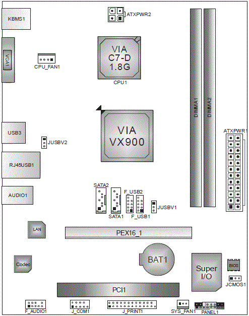 Рядом с чипсетом VX900 установлены два порта SerialATA 3 Gb/s, что полностью соответствует возможностям данного набора логики.