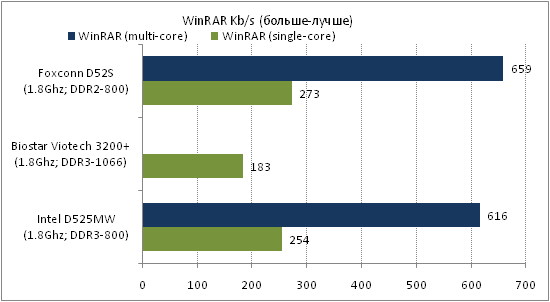 Еще один тест — WinRar (Кбайт/с; больше — лучше)
