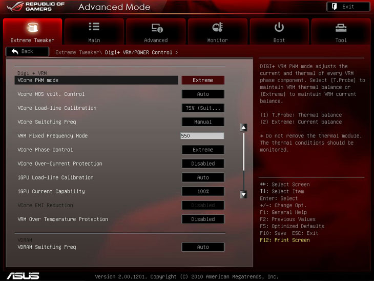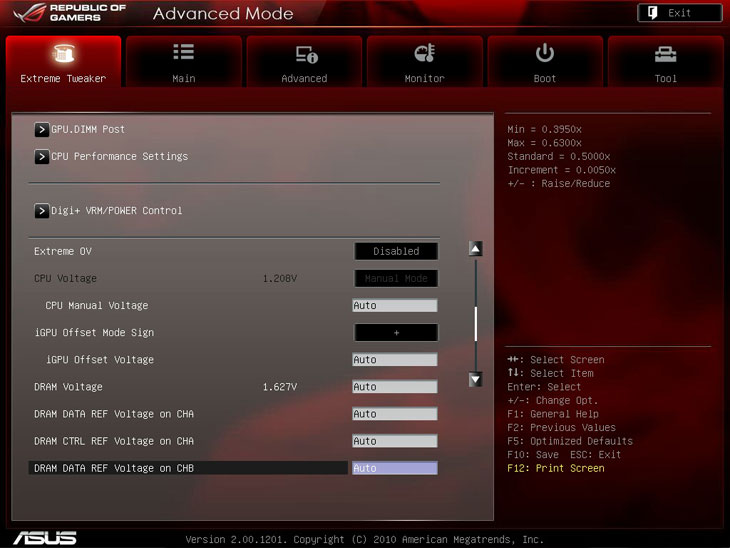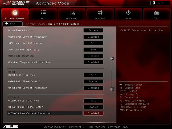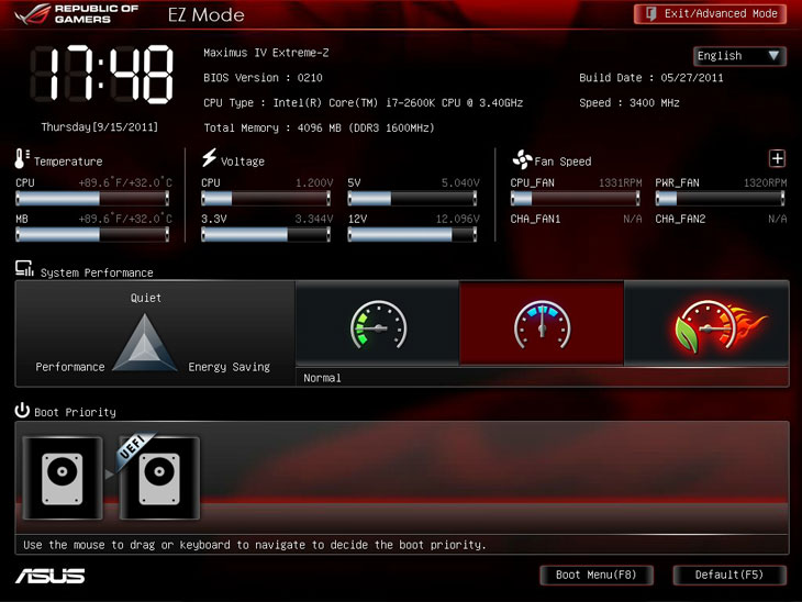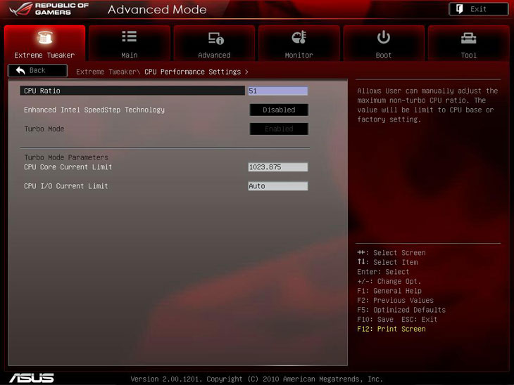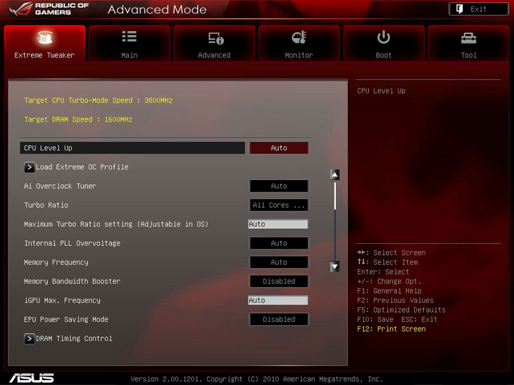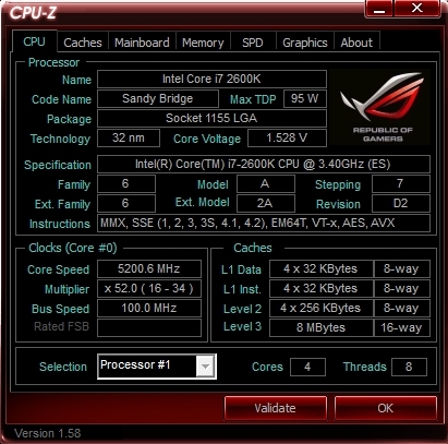 Новый чипсет Z68 не вносит каких-либо серьёзных изменений в построение системной логики для процессоров архитектуры Sandy Bridge, а значит разгон процессора по-прежнему возможен лишь посредством поднятия его множителя. Поэтому для тестов мы взяли процессор с разблокированным множителем Intel Core i7-2600 K, причём ровно тот же экземпляр, что использовался при тестировании материнской платы ASUS Maximus IV Extreme. Это позволит наглядно увидеть, изменились ли разгонные способности платы после «обновления». Для начала всё же проверим, какую максимальную базовую частоту сможет обеспечить наша материнская плата. ![]() Максимальное значение, при котором система полностью функционировала, составило 108 МГц. Полученный результат близок к максимальным результатам в этой «дисциплине» у других плат, однако увеличение базовой частоты по-прежнему очень мало, чтобы использовать его как «инструмент» для разгона. Поэтому эксперименты с разгоном традиционно мы будем проводить путём поднятия множителя. И начнём мы с функции автоматического разгона. ![]() Для материнских плат ASUS эта функция традиционно носит название CPU Level UP, ее активация производится в разделе BIOS Extreme Tweaker. Для процессора Core i7-2600K максимальная подобранная платой частота составила 4600 МГц, естественно, на такой частоте система работала полностью стабильно, поскольку частотный потенциал нашего процессора гораздо выше. Следующим этапом было осуществление разгона вручную. ![]() Здесь тоже никаких откровений, достигнутая предшественницей частота 5200 МГц также была покорена и в нашем случае, с применением схожих настроек BIOS. Однако выжать из процессора больше, не потеряв при этом в стабильности, нам так и не удалось, видимо достигнут потолок конкретного экземпляра ЦП. Поэтому можно считать, что прекрасные разгонные возможности материнской платы Maximus IV Extreme как минимум не ухудшились. В таблице представлены настройки BIOS по умолчанию и после ручного разгона.