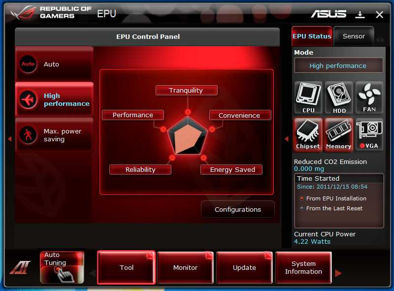 так и установив специальную утилиту EPU под Windows, позволяющую выбрать один из режимов энергосбережения: