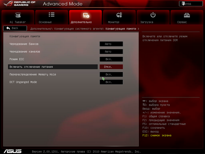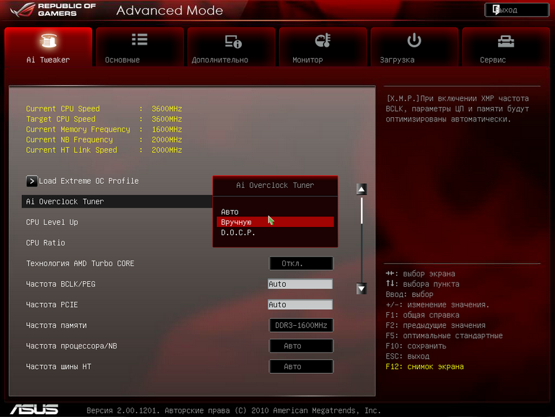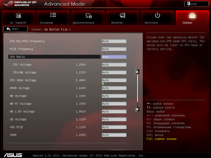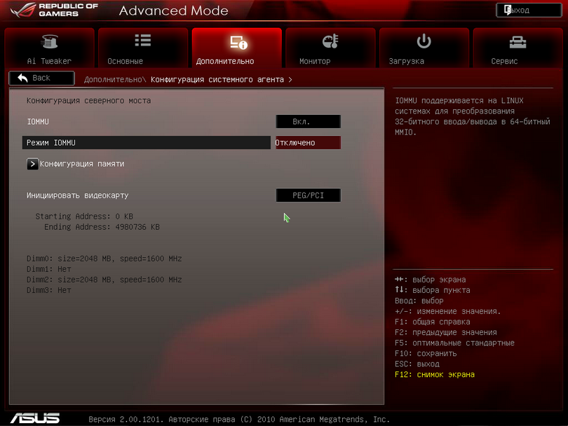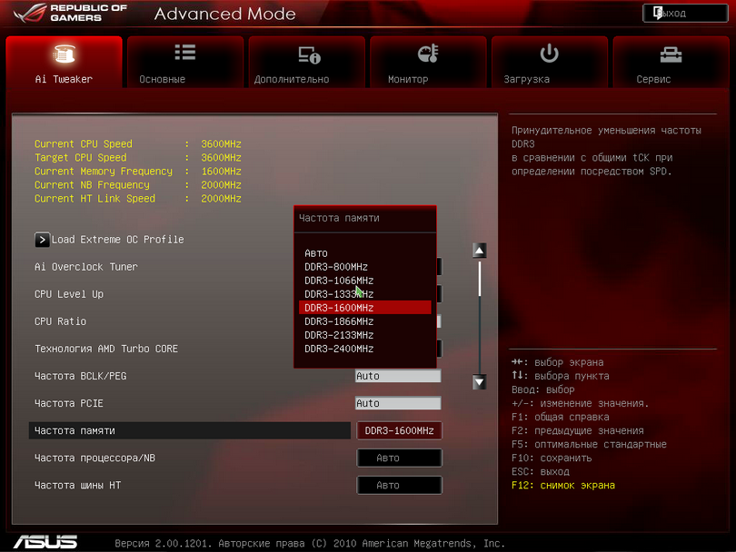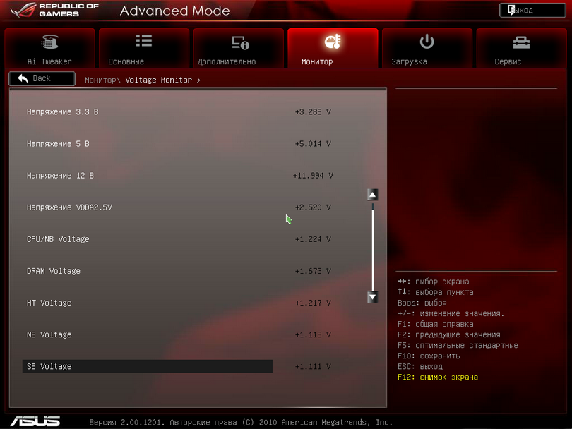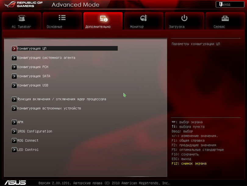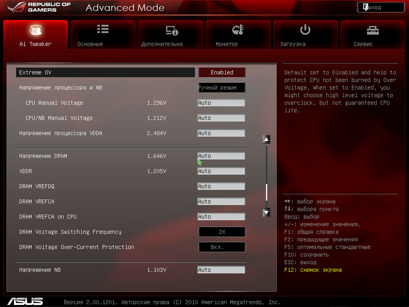 ⇡#Меню настроек BIOS Setup платы ASUS Crosshair V Formula