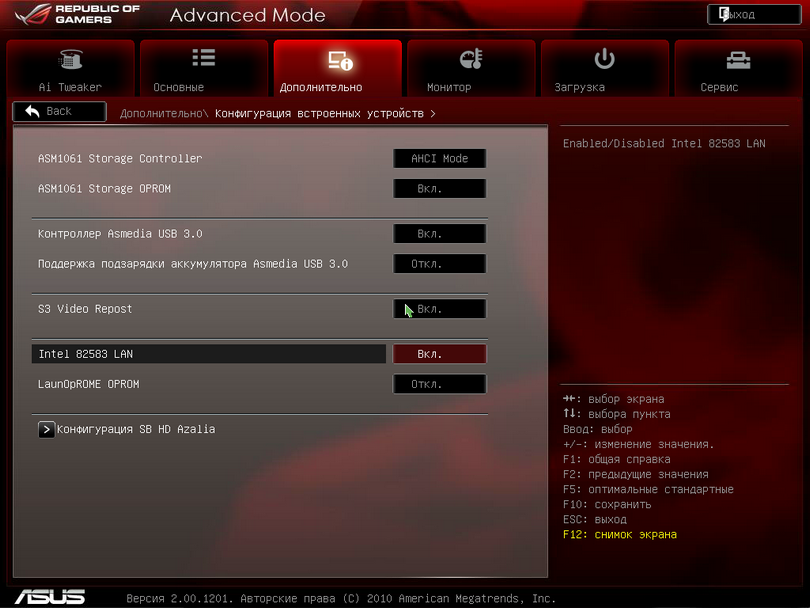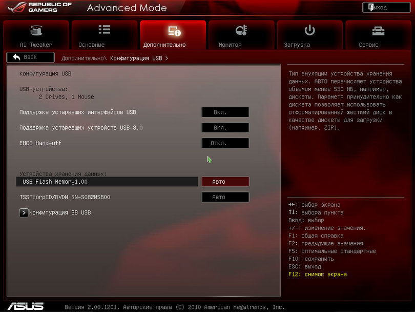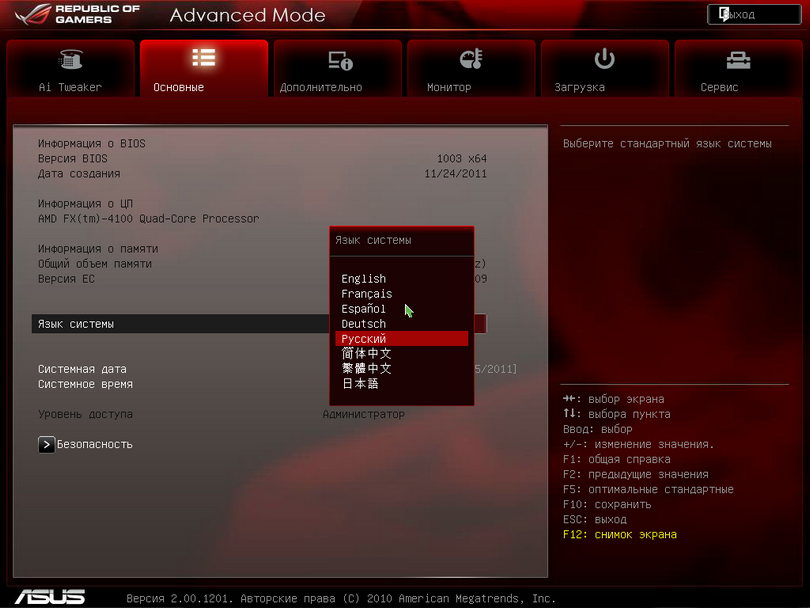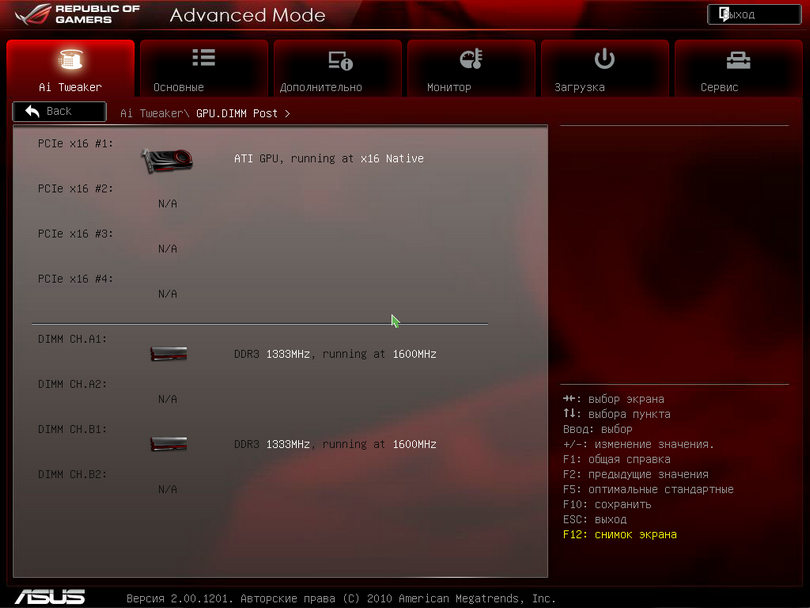 Зашитый в 32-мегабитную микросхему AMI UEFI BIOS этой платы традиционно для топовых «материнок» ASUS очень богат возможностями настроек — обычных и тонких. Большинство функций ясно из приведённых ниже скриншотов, тем более что красивый графический, «под мышку», интерфейс меню BIOS Setup достаточно качественно переведен на русский язык (хотя с непривычки иногда приходится покумекать, что на самом деле означает тот или иной русский термин).