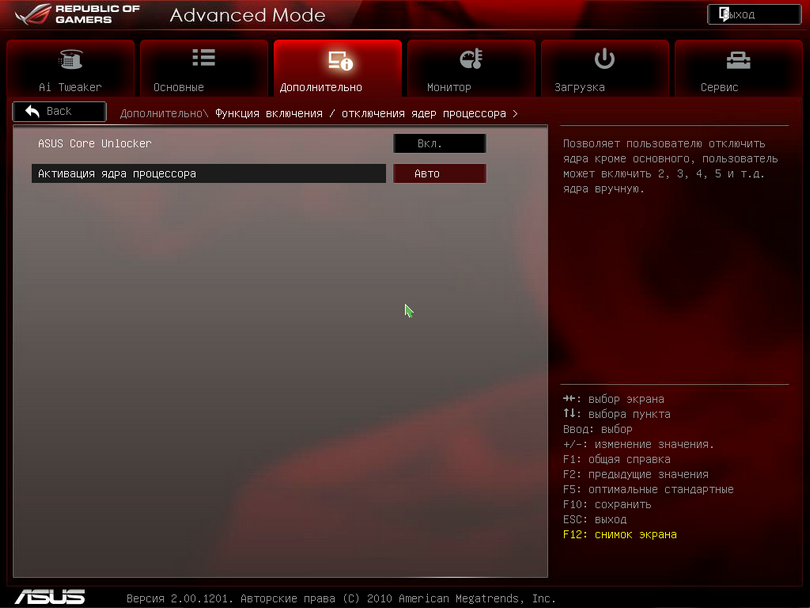 Функция ASUS Core Unlocker, если повезет, позволяет разблокировать отключенные ядра в процессорах Athlon и Phenom (при этом система, однако, может работать нестабильно). На процессорах AMD FX эта функция, увы, не работает, и превратить 4-ядерник в 6- или 8-ядерник не получится. Зато функция «Активация ядра процессора» позволит при необходимости исключить одно или несколько ядер из работы процессора.