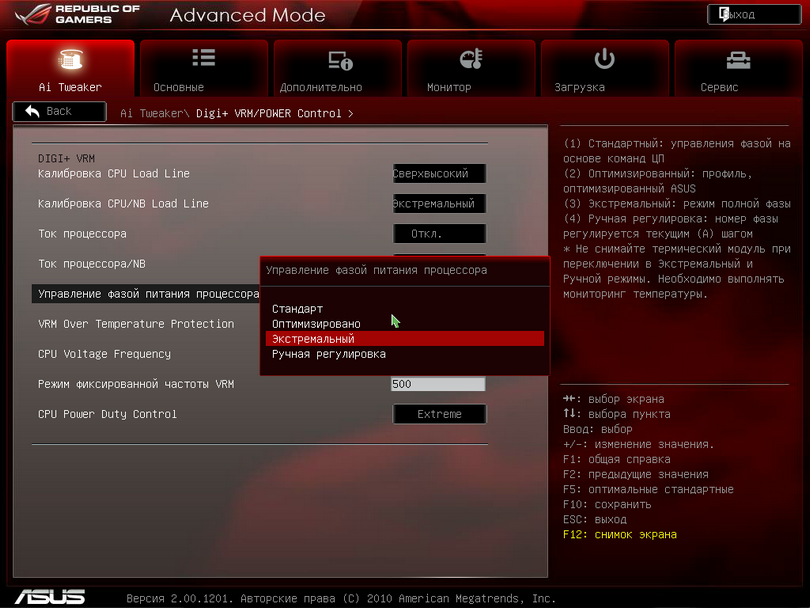 отключать при необходимости температурную защиту VRM от перегрева и задавать частоту работы VRM в диапазоне от 300 до 550 МГц с шагом 10 МГц (более высокая частота работы VRM ускоряет переходные характеристики, то есть уменьшает нестабильность питающего ЦП напряжения, но при этом VRM больше греется и потребляет).