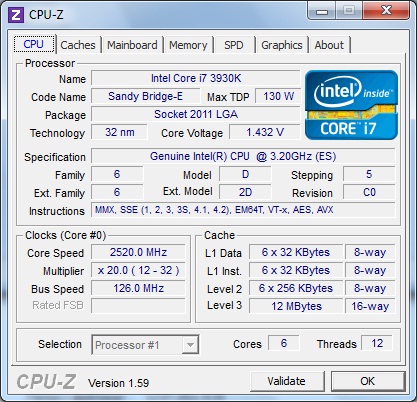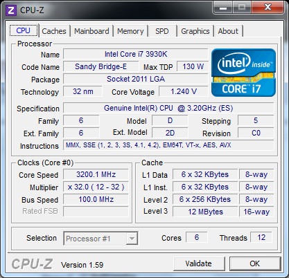 Процессор Intel Core i7-3930K (LGA2011; 3,2 ГГц; Sandy Bridge-E) |