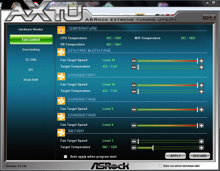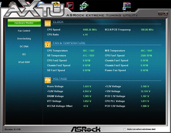 Информацию с сенсоров можно также получить при помощи пакета AXTU (ASRock Extreme Tuning Utility).