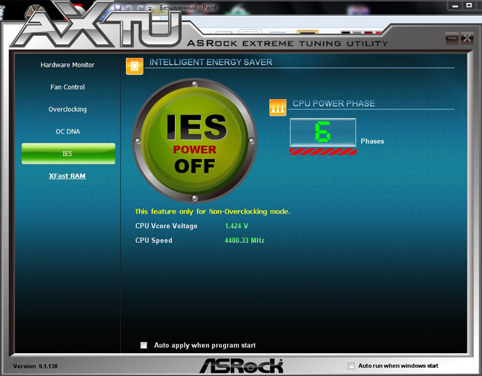 Заканчивая говорить о пакете AXTU, отметим, что входящие в него утилиты позволяют экономить электроэнергию при помощи технологии ASRock I.E.S. (Intelligent Energy Saver),