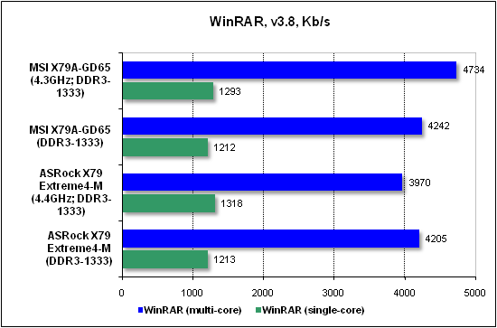Сжатие данных (WinRAR) измерялось в Кбайт/с, то есть больше — это лучше.