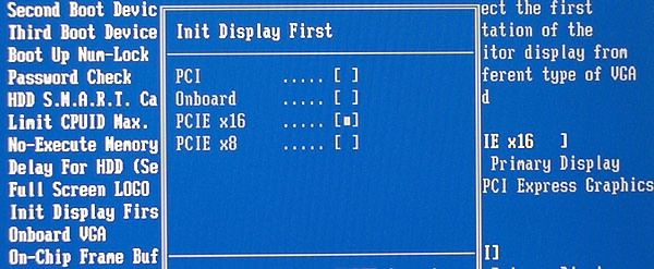 Можно выбрать стартовый видеоускоритель, в том числе второй внешний, который находится на шине PCI Express x8.