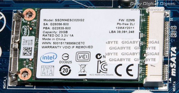 В более дешёвую плату GA-Z68XP-UD3 юзер может самостоятельно установить один из mSATA SSD, руководствуясь, например, списком рекомендованных моделей, или просто подключить подходящий для этих целей SSD через обычный SATA-порт.