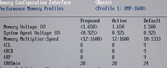 Разгон памяти множителем не заладился. Хотя в BIOS нужные частоты (1600 МГц и выше) выставлялись, память при этом упорно продолжала работать на 1333 МГц. Единственный удавшийся вариант повышения частоты — запуск памяти по профилю X.M.P. в соответствующем пункте меню: