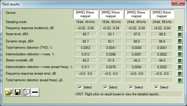 При измерениях качества аудиотракта все «улучшайзеры» звука, естественно, отключались.