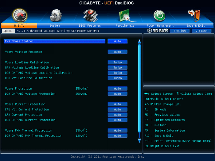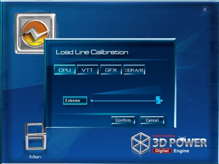 Режимы Loadline Calibration можно изменять в программе Gigabyte 3DPower, однако внесенные изменения действуют только до перезагрузки системы. Каких-либо изменений в потреблении энергии при переключении режимов замечено не было: возможно, чтобы увидеть разницу, требуется собирать данные длительное время.