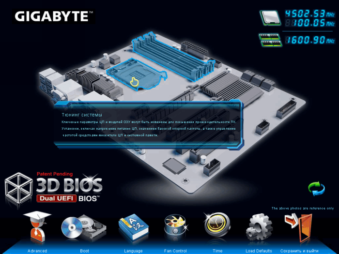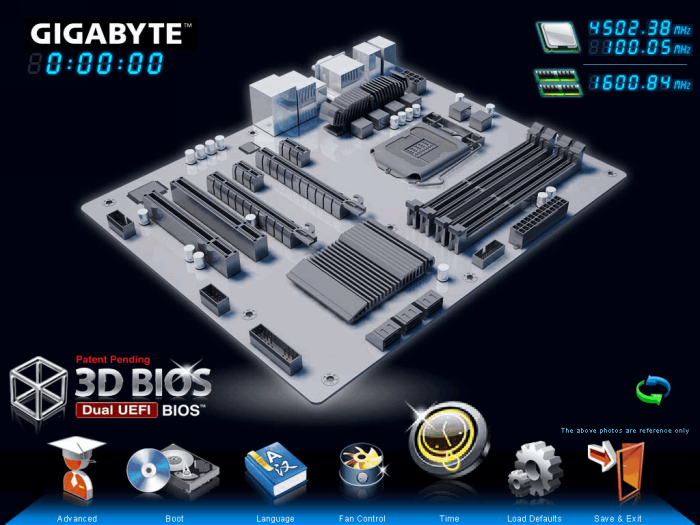 Работа над совершенствованием микрокода ведется постоянно. С момента выхода платы программисты Gigabyte выпустили уже шесть обновлений, содержащих различные улучшения по совместимости с оборудованием или связанные с удобством использования. Например, поставляемая по умолчанию версия BIOS (F3) при первом запуске предлагает пользователю режим Advanced, а собственная разработка Gigabyte 3D BIOS включается по нажатию клавиши F1 или соответствующей кнопки в правой верхней части экрана. Версия F9 изначально запускает «трехмерную» версию интерфейса.