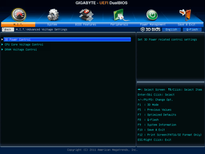 Снова вернемся на пару уровней назад и заглянем в Advanced Voltage Settings. В нем мы видим явное разделение на CPU/DRAM-секции и общую для них обоих категорию 3D Power Control. С нее и начнем.