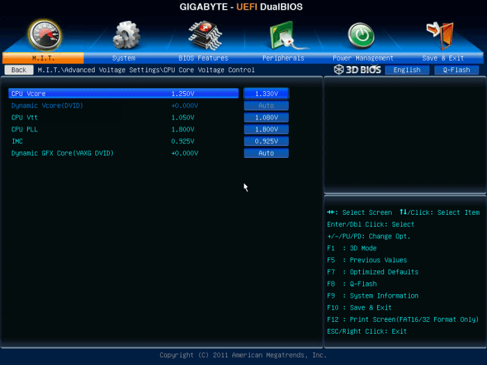 CPU Core Voltage Control позволяет пользователю устанавливать все необходимые напряжения по своему усмотрению. Шаг изменения для всех значений равен 0,005 В. Диапазоны регулировок достаточно широки, для удобства они представлены в виде таблицы: