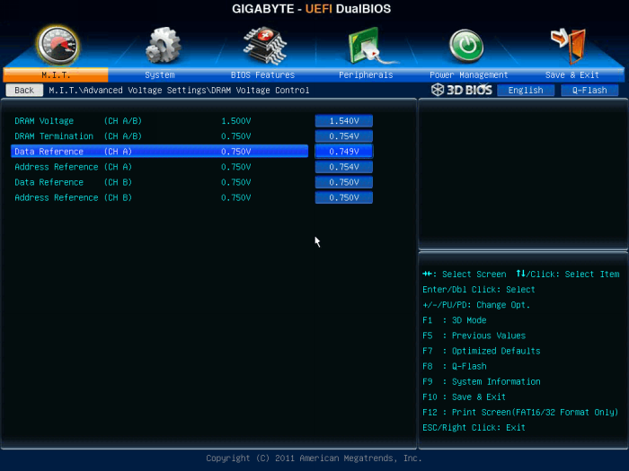Для памяти ситуация оказалась диаметрально противоположной: материнская плата выставила более низкое напряжение (1,54 В), причем его снижение не сказалось на стабильности системы. Напряжение 1,57 В использовалось как гарант абсолютной стабильности, но оказалось излишним.