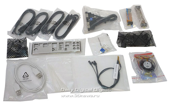 Комплект поставки не просто полный, а один их самых больших, какие нам вообще доводилось видеть. Обширный комплект поставки является отличительной чертой почти всех плат ASUS серии Republic of Gamers - покупатель не просто так платит за бренд и топовую серию, а получает как минимум большое количество различных дополнений.