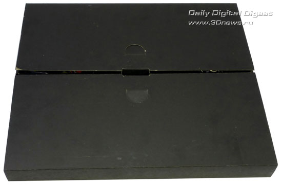 Открывается коробка с торца, где находится ручка. Внутри внешней упаковки находятся еще две коробки из плотного черного картона. ASUS заботится об удобстве пользователя даже в мелочах, поэтому в обеих черных коробках проделаны отверстия для пальцев, чтобы их было удобно вынимать.