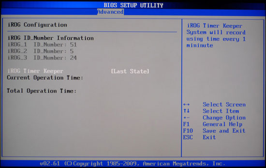 Пункт "iROG Configuration" позволяет замерять время, проведенное компьютером во включенном состоянии.