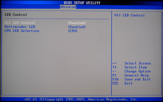 Отдельный пункт "Led Control" содержит в себе настройки светодиодов, расположенных на плате. Например, светодиоды отображают режим автоматического разгона, если он, конечно, используется.