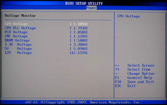 В разделе "Power" также находится пункт "Voltage Monitor", позволяющий наблюдать за значениями напряжений на всех компонентах системы.