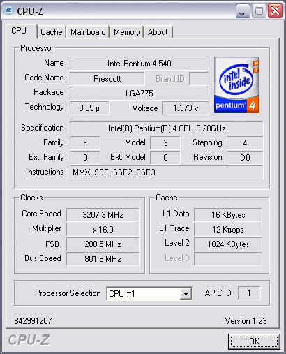 Напомню, что все процессоры Intel LGA775 основаны на ядре Prescott (минимум степпинга D0), которое имеет штатное Vcore = 1.3875V и выделяет большое количества тепла. Поэтому для разгона таких процессоров важно поднимать напряжением как можно с меньшим шагом (на некоторых платах шаг составляет 0.0025V !).