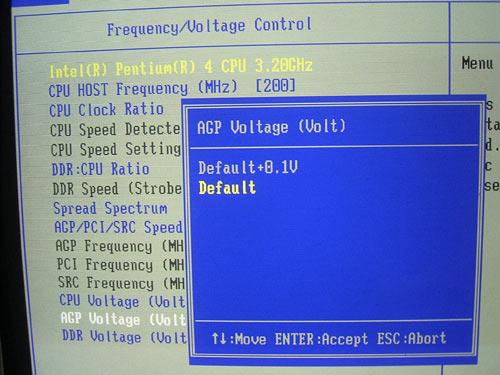 Кроме этого в распоряжении оверклокера есть функция повышения напряжения на шине AGP.